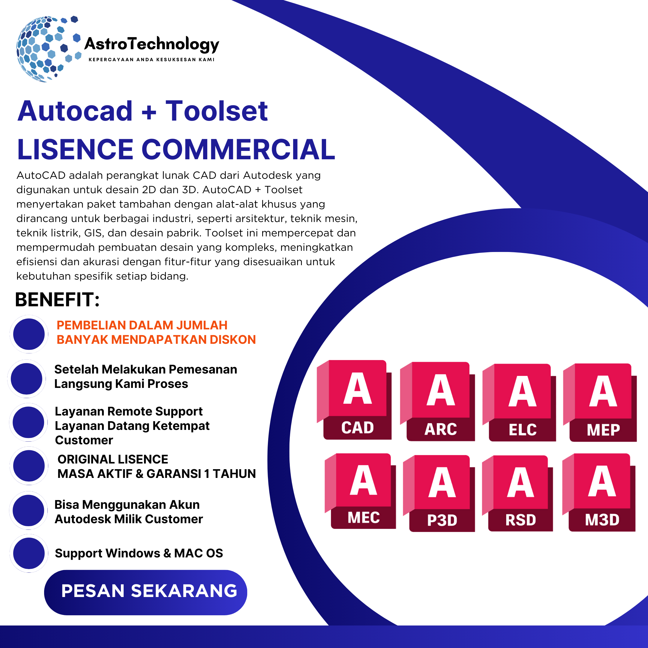 AutoCAD + Toolset Commercial License Resmi Autodesk