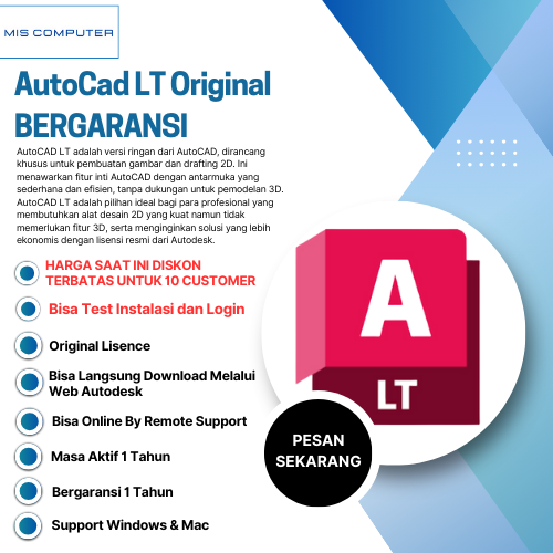 Gunakan AutoCAD original dengan tambahan toolset spesialis (Architecture, Mechanical, Electrical, MEP, Plant 3D, Map 3D, dan Raster Design) untuk mempercepat pekerjaan desain sesuai bidang Anda. Dilengkapi lisensi resmi, fitur lengkap, serta bergaransi, menjadikan produktivitas desain lebih efisien, akurat, dan profesional.